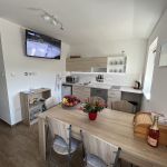 kuchyň: mikrovlnná trouba, rychlovarná konvice, lednice, myčka nádobí, varná deska (2x plotýnka), standardní vybavení –nádobí-talíře-hrnky-příbory atd.